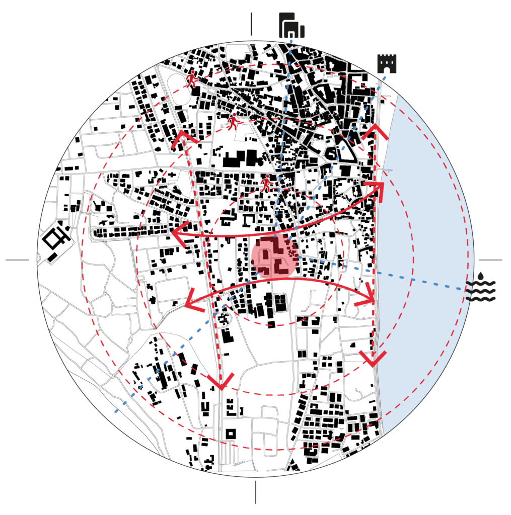 Η αρχιτεκτονική μας πρόταση βρίσκεται σε ένα κεντρικό σημείο της περιοχής όπου σήμερα χρησιμοποιείται για ελαφριά βιομηχανία. Τα κριτήρια επιλογής της τοποθεσίας του έργου ήταν η εύκολη πρόσβαση στις κύριες περιοχές της πόλης όπως το κέντρο της πόλης, ή θάλασσα, πάρκα αλλά και στις κύριες περιοχές εργασίας.